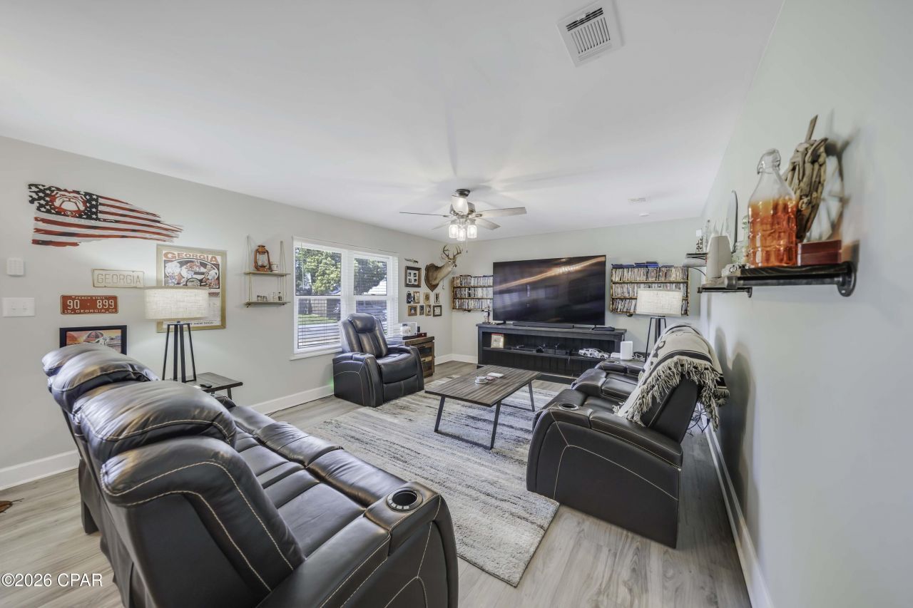 Welcome home to this fully updated 2-bedroom, 2-bathroom brick home situated on a large corner lot in the established neighborhood of North Lagoon Heights. In 2021, the interior was refreshed with fresh paint, durable LVP flooring throughout, updated bathrooms, and a modern kitchen complete with new appliances. Major systems were upgraded in 2023, including a new HVAC system, tankless water heater, garage door, and energy-efficient windows, providing long-term comfort, efficiency, and lower utility costs. Outside, enjoy the large covered deck, spacious fenced yard and 16x10 outbuilding, perfect for storage, a workshop, or extra flex space. This prime location provides easy access to shopping, dining, top-rated schools, the Naval Support Activity (NSA) Panama City, and the beautiful white-sand beaches of the Emerald Coast. Whether you're looking for a primary residence, second home, or investment property, this turnkey home checks every box.