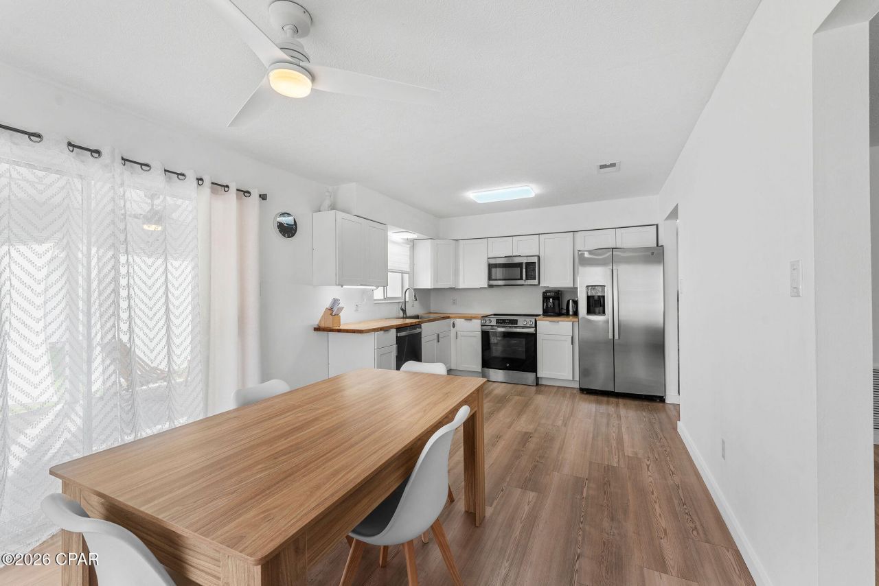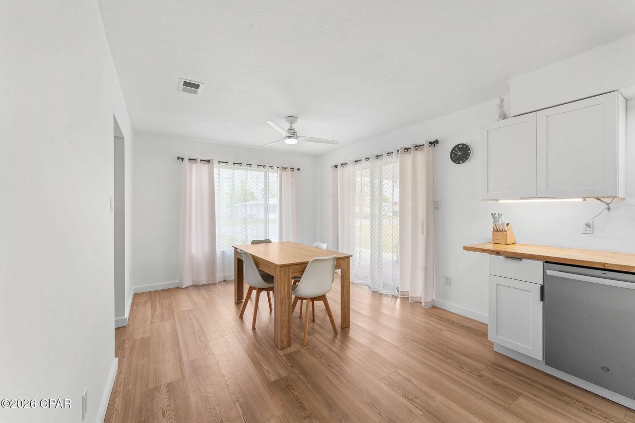 Seller is offering $10,000 Flex Cash for buyer incentives, which may be used toward closing costs, interest rate buy-down, or price reduction . Beautifully Renovated, Move-In Ready, and Sold Fully Furnished! Welcome to this beautifully updated home in a quiet neighborhood, perfectly located just minutes from Tyndall Air Force Base and close to local schools, shopping, dining, and everything Panama City has to offer. Whether you are a military family, first-time homebuyer, or simply searching for a modern turnkey property, this home is a must-see. Renovated in 2025, this home offers stylish updates and thoughtful improvements throughout. Features include brand-new luxury vinyl plank flooring, fresh interior and exterior paint, upgraded closets with sliding doors, and custom shelving and hanging systems designed for optimal storage. The fully refreshed kitchen features new cabinetry and General Electric appliances, while plumbing upgrades include new toilets, sinks, and faucets throughout the home. Additional improvements include new lighting fixtures, ceiling fans, outlets, and switches, creating a fresh and modern feel in every room. For added peace of mind, the roof was replaced in 2019, the HVAC system was updated on 06/30/2023 and has been inspected and serviced, and the home also includes a brand-new washer and dryer (2025). The sewer system has been fully inspected and cleaned, and the concrete driveway has been refreshed as well. Step outside to enjoy the backyard with a convenient outdoor living space. Fully furnished and truly move-in ready, this home combines comfort, style, and convenience in one exceptional package.