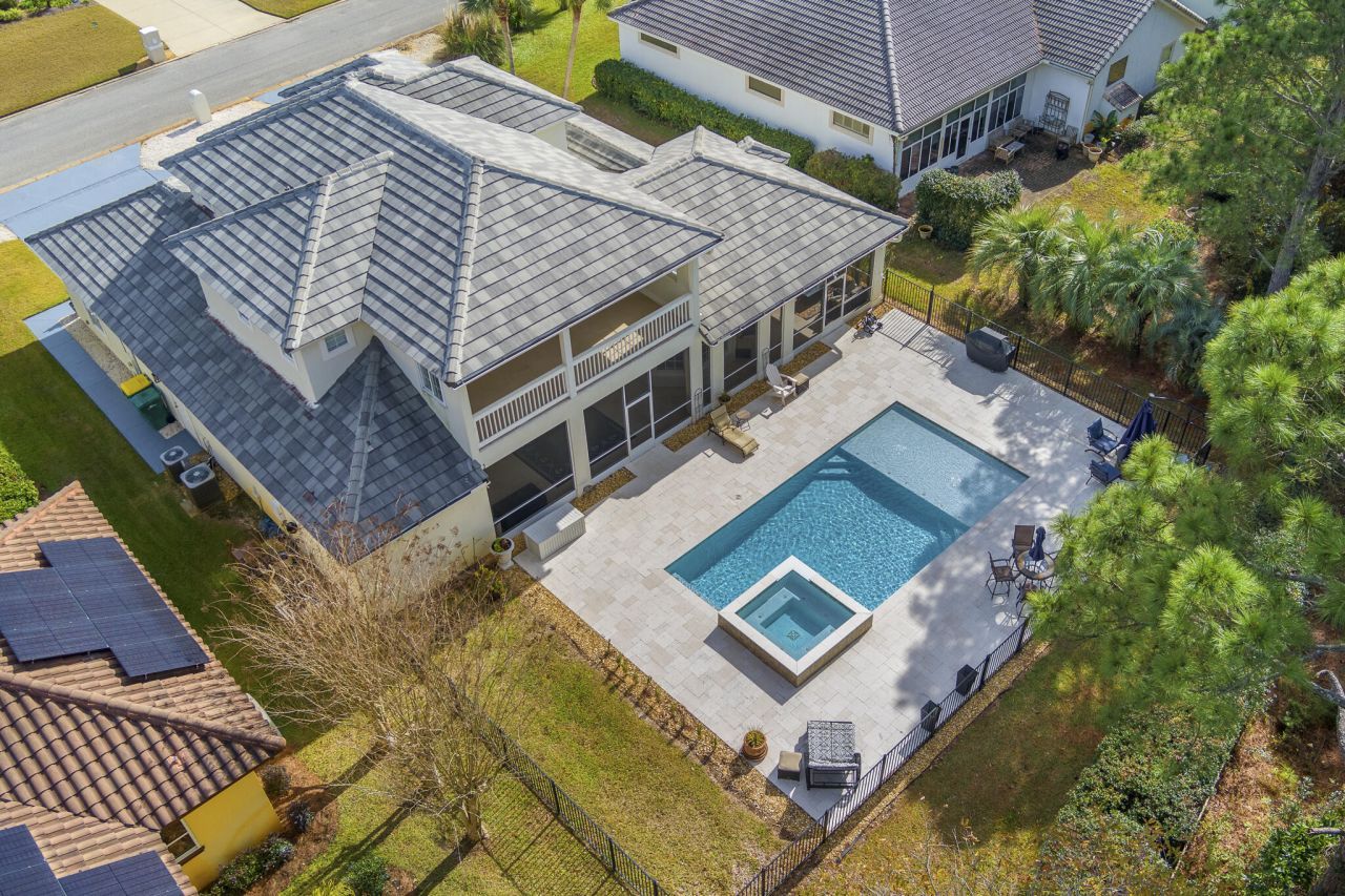 PRIVATE OASIS retreat with massive Heated Pool/hot tub in the gated Golf Course Community of Emerald Bay. Lush greenery shields views from neighbors. Double, screened lanai w/ multiple fans. Master suite on 1st floor. Bonus family room/office w/ bright view of pool. Circular drive outside Grand Entryway greets guests.